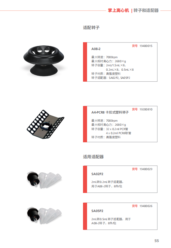 較大容量2ml x 8 離心管; 2 x 0.2ml PCR8排管,當(dāng)與適配器聯(lián)用時(shí),亦可使用0.5ml或0.2ml離心管。